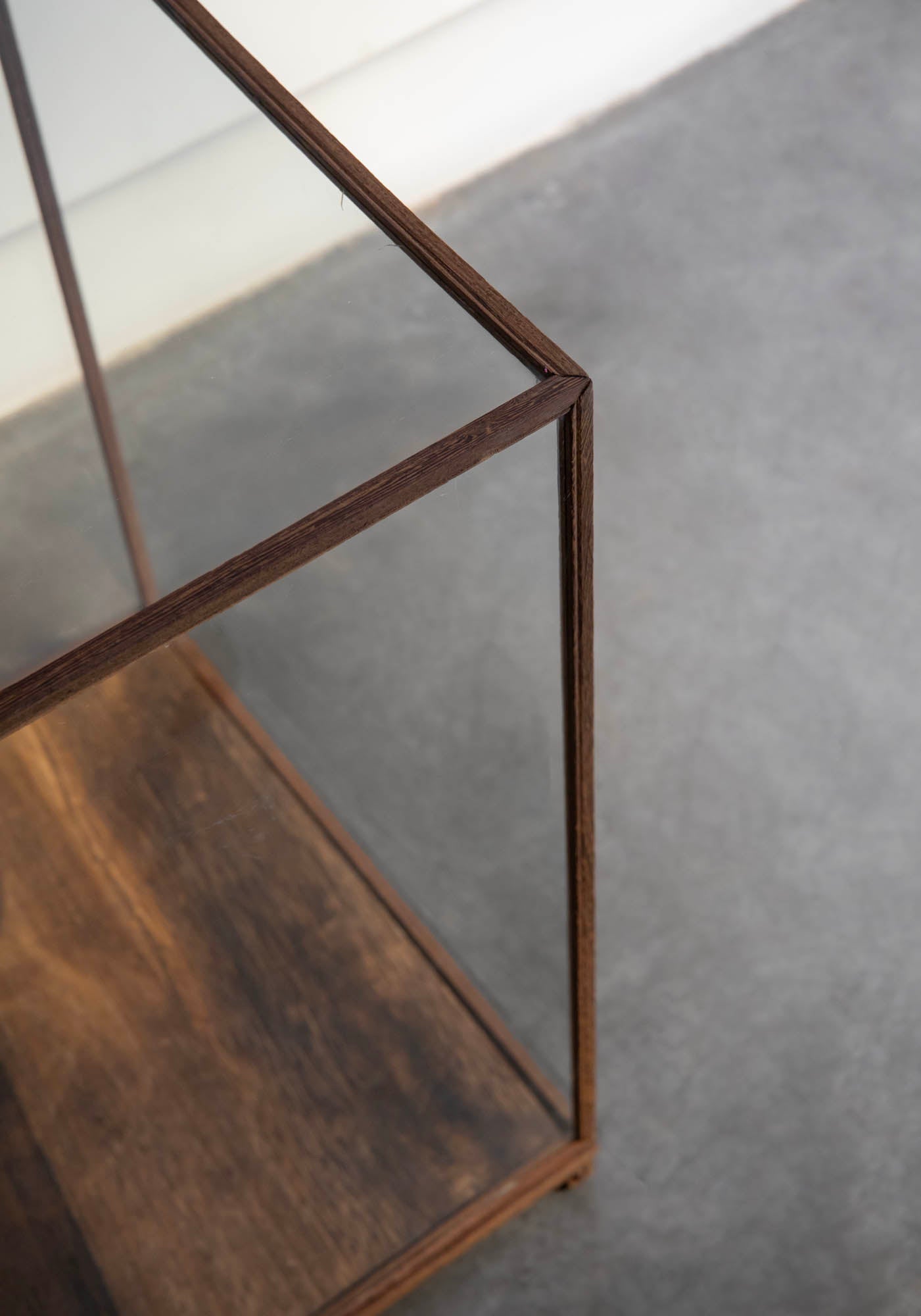 Display cases made of slate and glass, with an oriental accent at their base, a subtle decorative touch that will not detract from the importance of the object intended for their safekeeping.