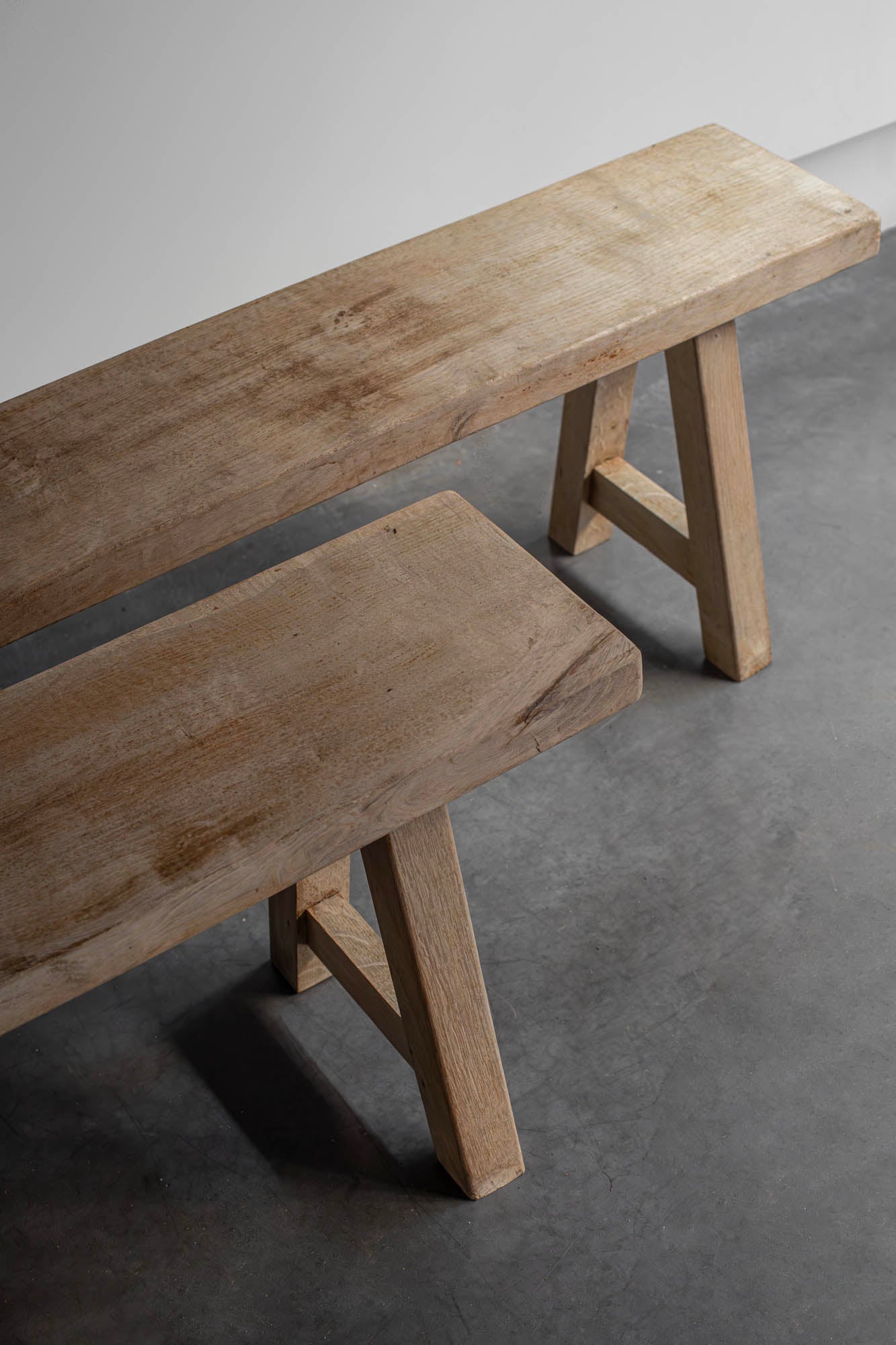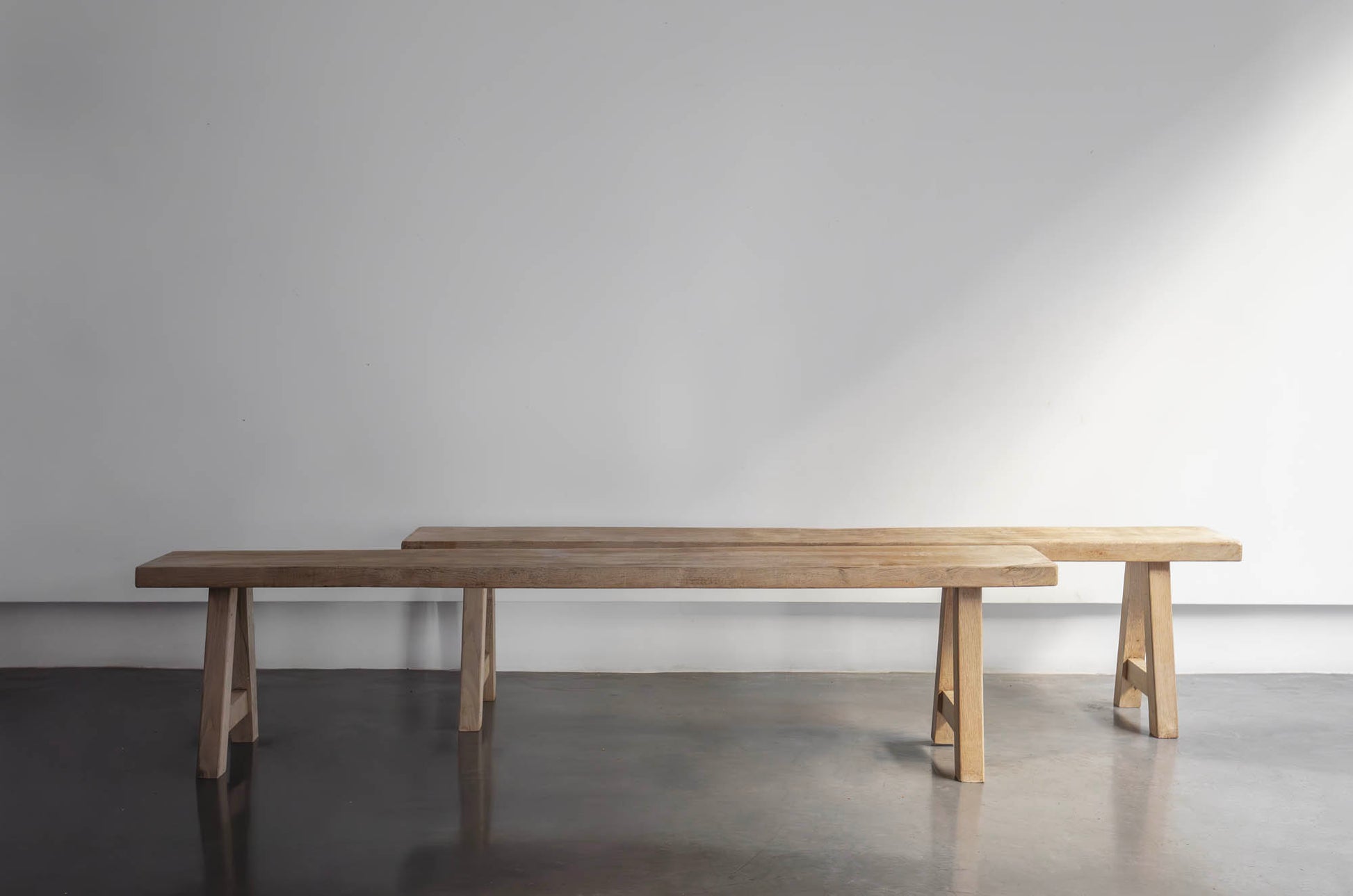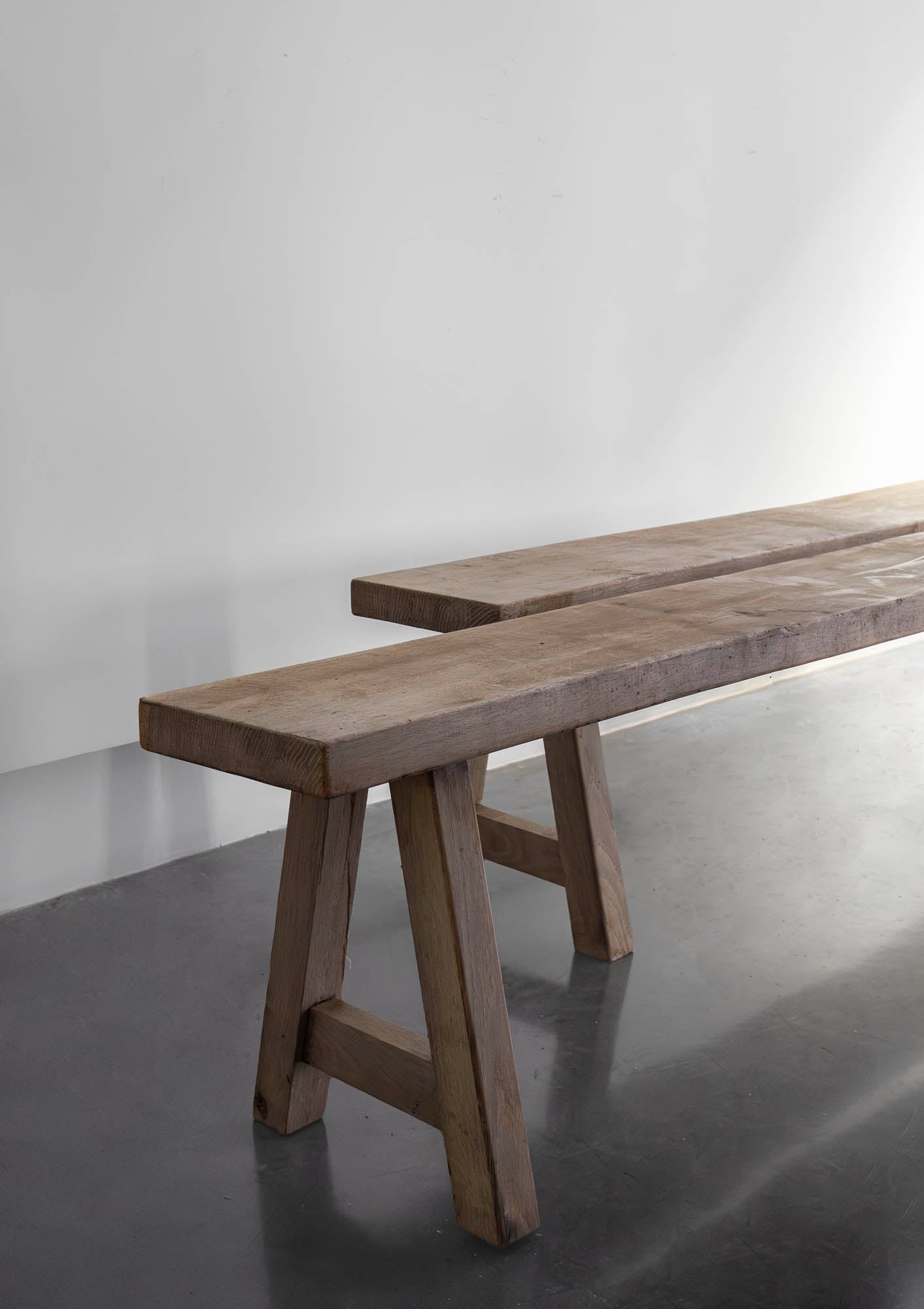 Funcionales y robustos, estos bancos originarios del norte del Périgord presentan un excelente estado de conservación. Su austera factura resalta la importancia de la materia que los dota de una extraordinaria contundencia formal. Resultan prácticos, versátiles y resistentes, pudiendo solucionar el atavío de una dependencia interior, de un porche o de un jardín.