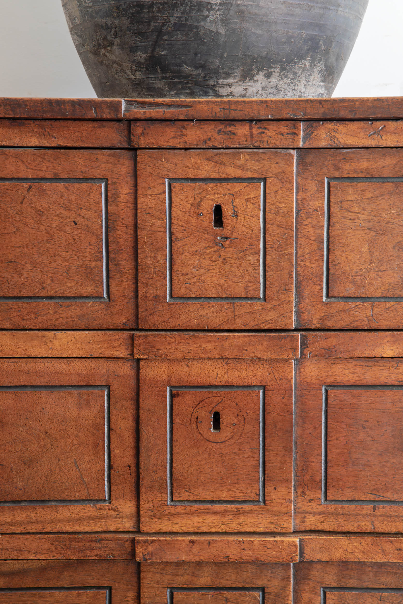 Cómoda francesa época Louis XVI realizada en madera de nogal tallado a mano. Con sobriedad y elegancia dieciochesca formaba parte del mobiliario de un hotel de charme situado en la orilla del lago de Lemán entre Francia y Suiza.