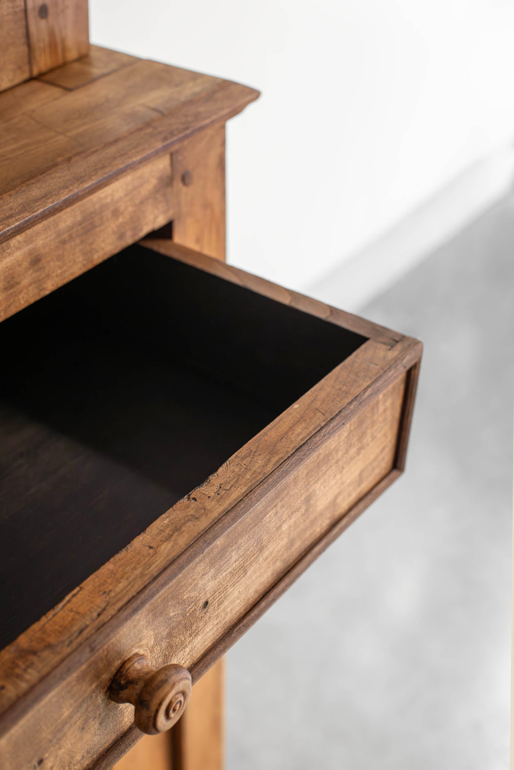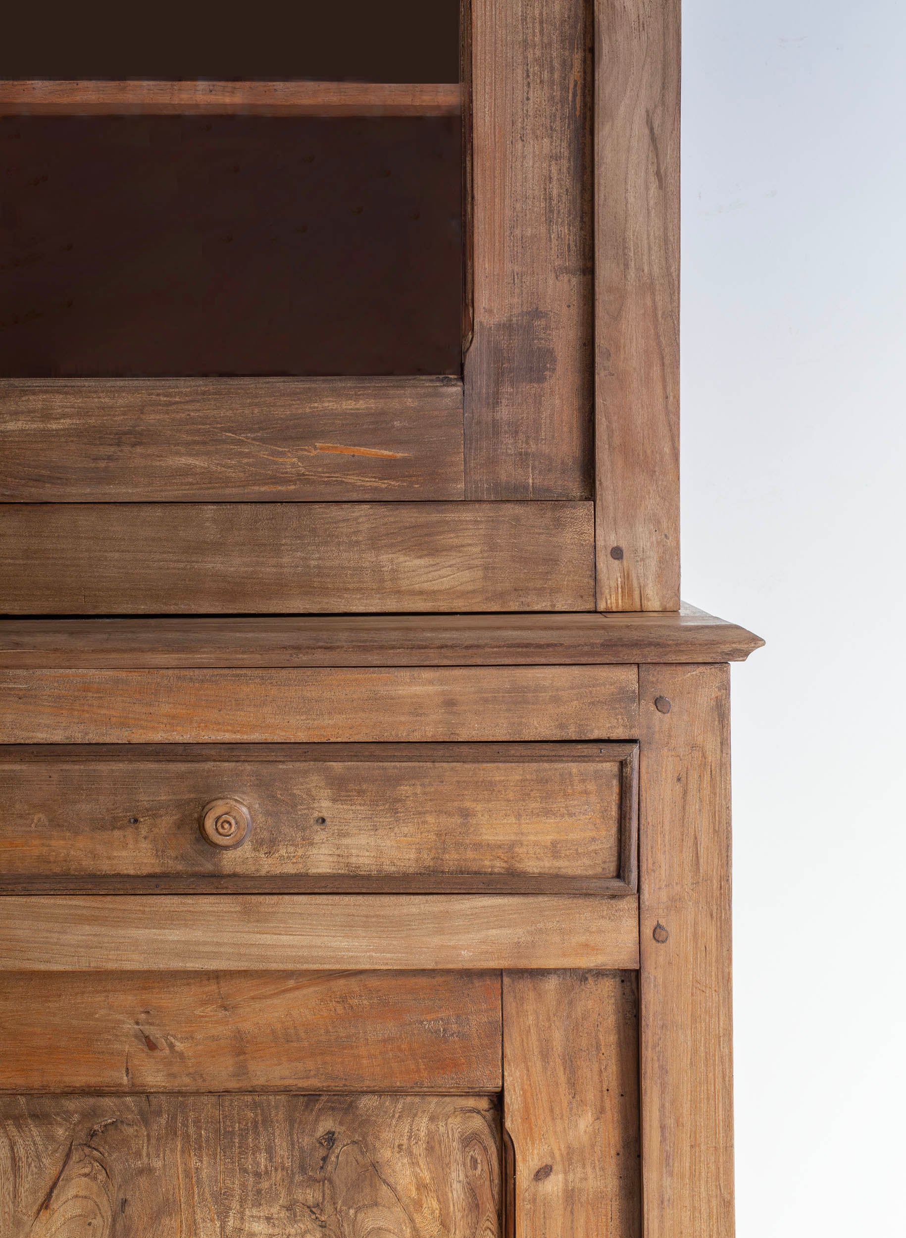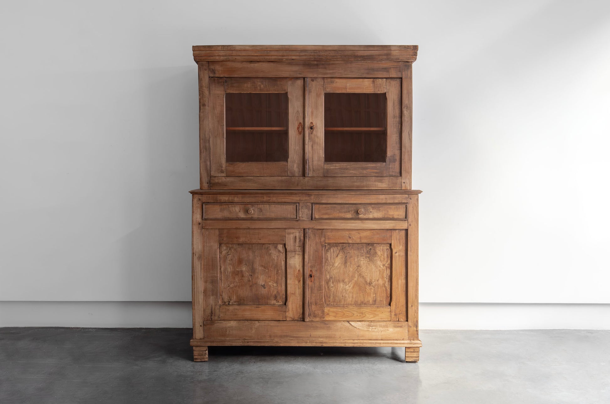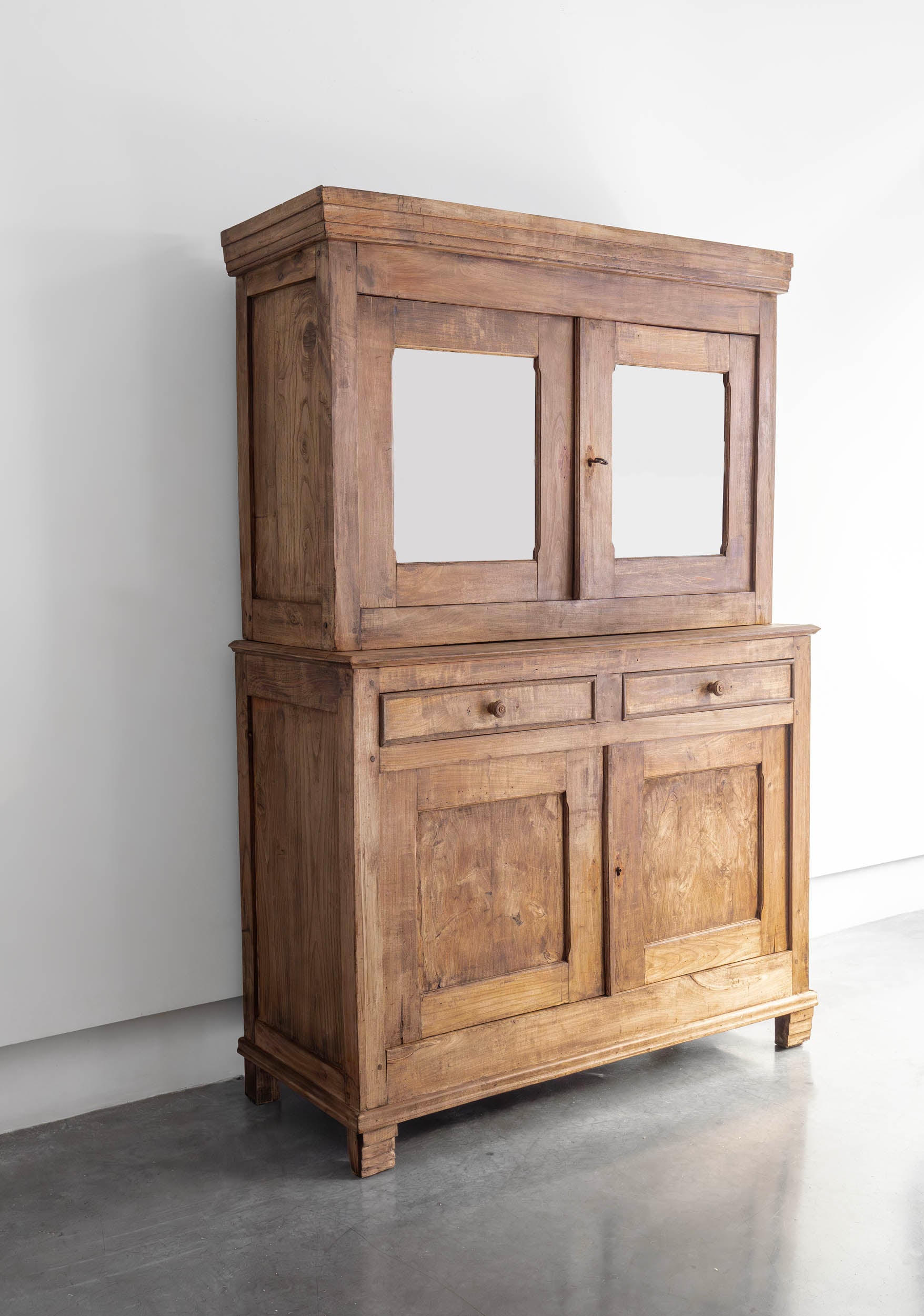 Esta vitrina popular en madera de roble color tabaco destaca por su simple rusticidad. Proviene de una farme en las afueras del pueblo de Fontevieille en Francia y se usaba en la cocina para guardar vajillas y utensilios de cocina.