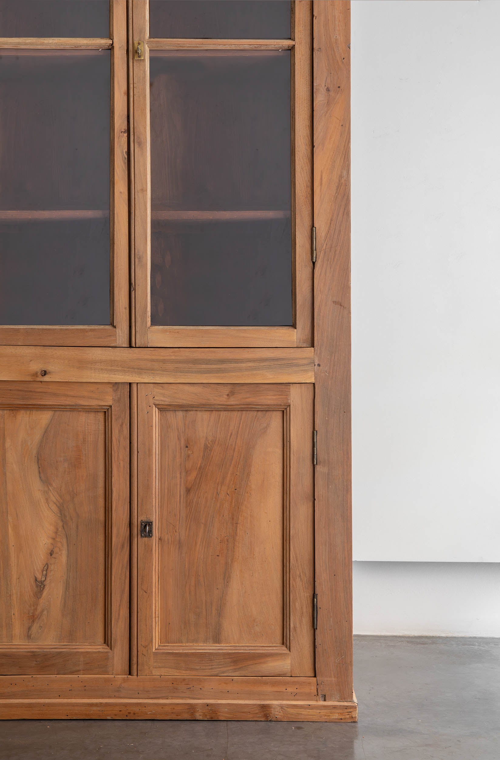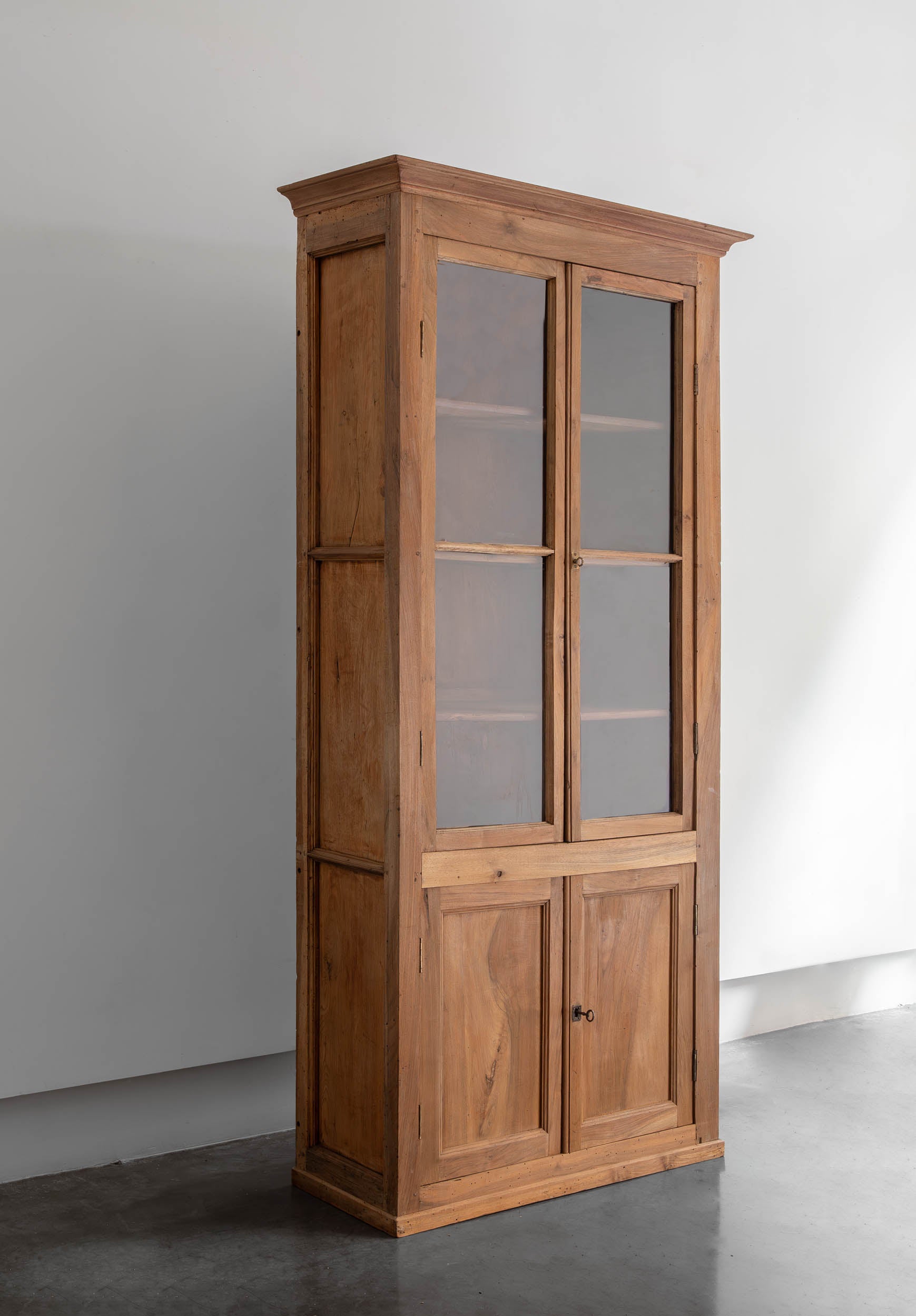 Vitrina en madera de nogal con laterales en madera de pino. Elegante en su simplicidad, formaba parte de la boiserie de una notaria situada en Honfleur un pueblo con encanto romántico de Normandia.
